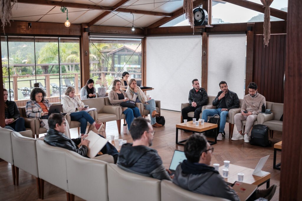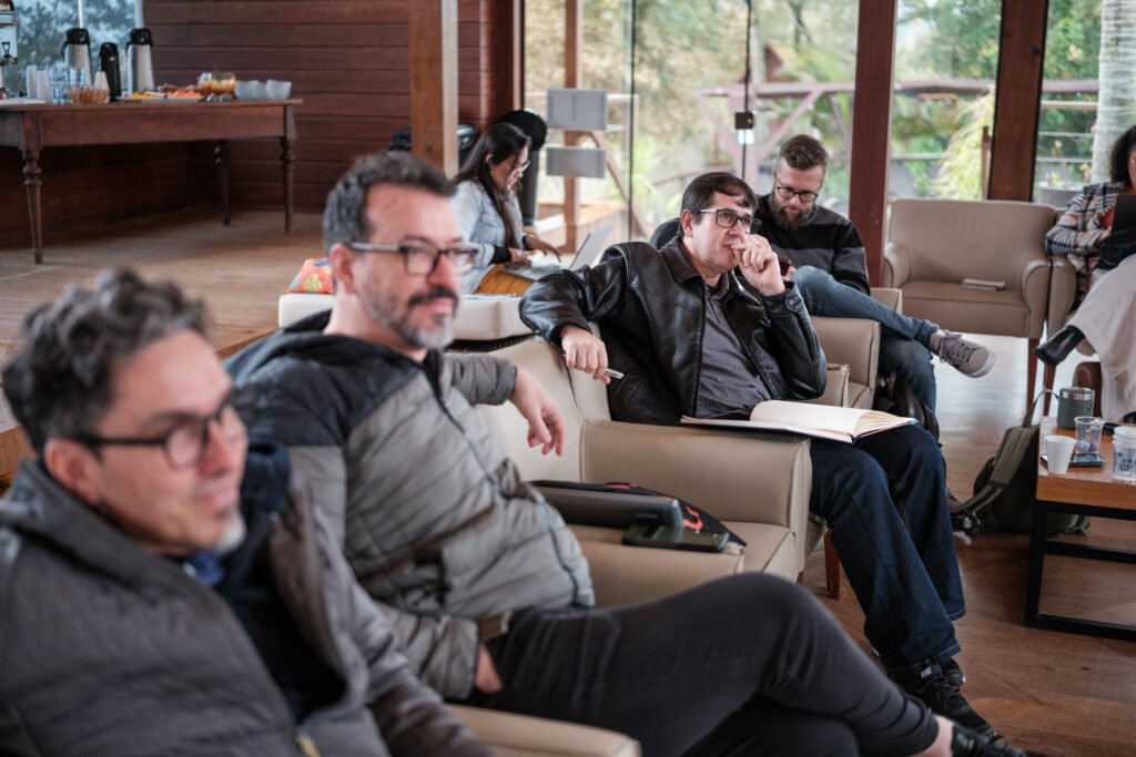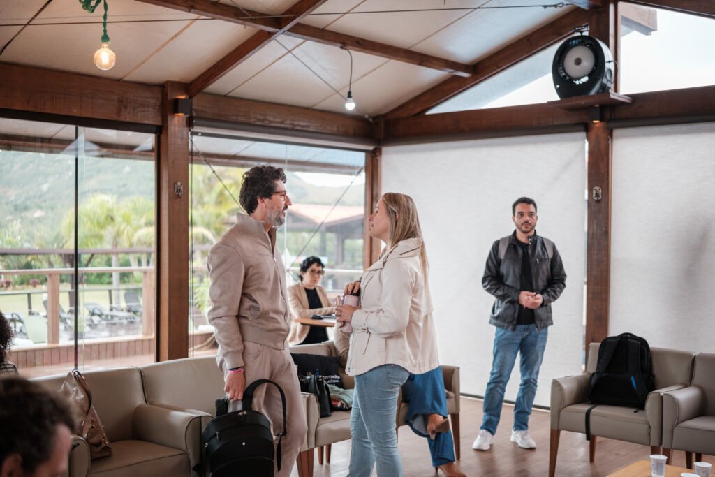 As reuniões acontecem em um ambiente intencional, fora dos grandes centros, desenhado para reduzir ruído, favorecer foco e permitir conversas que não acontecem na rotina operacional.